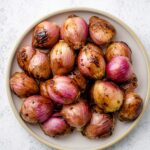 Deliciously tender and caramelized whole roasted shallots, seasoned with olive oil, balsamic vinegar, and aromatic herbs. Perfect as a flavorful side dish or an elegant addition to any meal.